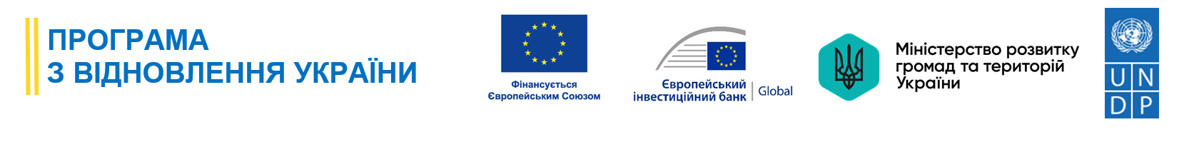 Програма з відновлення України (ПВУ) – багатосекторний кредит від Європейського інвестиційного банку на загальну суму 340 млн євро, спрямований на підтримку України у відновленні критичної соціальної інфраструктури: лікарень, шкіл, дитсадків, соціального житла, адміністративних центрів, об’єктів тепло-, водопостачання та водовідведення. Програма втілюється у громадах, що постраждали від збройної агресії РФ та/або громадах, що прихистили значну кількість внутрішньо переміщених осіб. Метою ПВУ є створення гідних умов життя для внутрішньо переміщених осіб та місцевого населення, посилення стійкості та соціальної згуртованості громад. Фінансова угода між Україною та Європейським інвестиційним банком була підписана у грудні 2020 року.