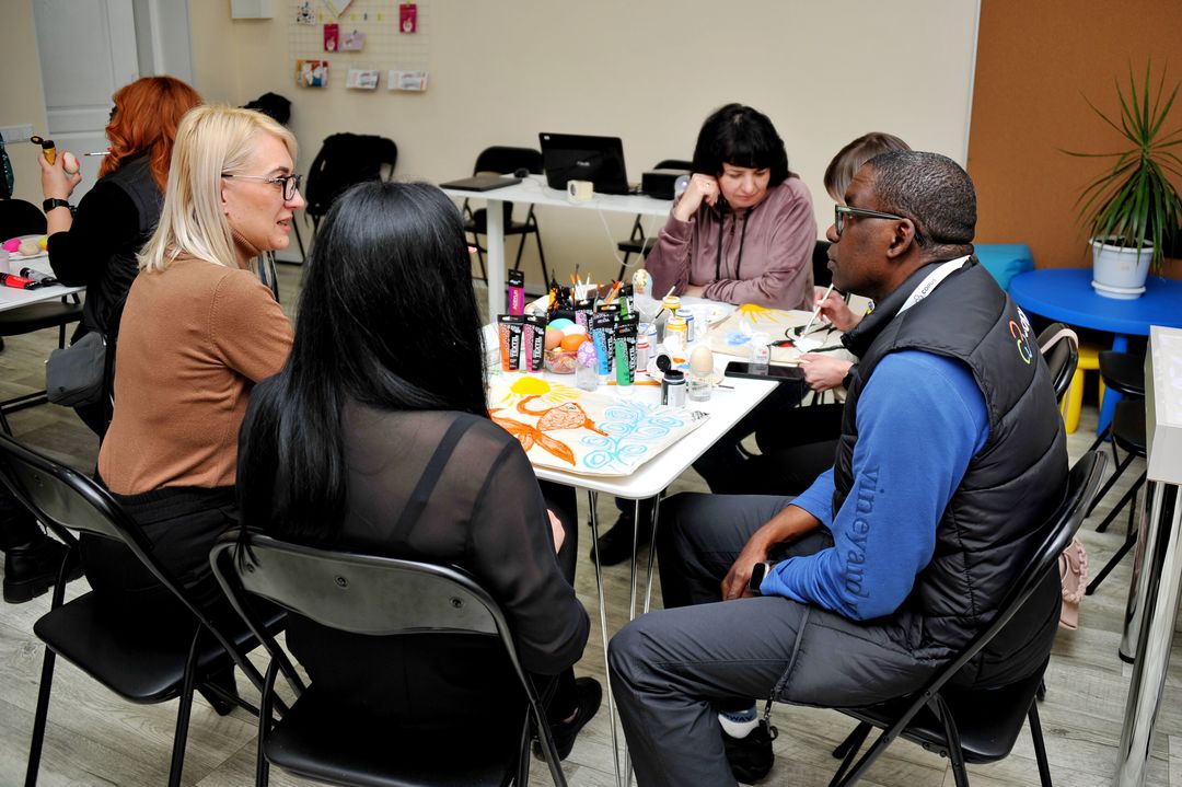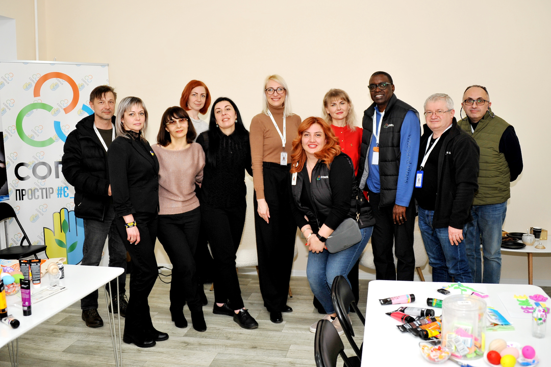 25 березня 2024 року з моніторинговою місією до нас прибули представники міжнародної гуманітарної організації Corus International - Україна: громадяне Сполучених Штатів Америки Tamara Demuria і Mahmoud Bah та громадянин Грузії Zaza Tsereteli, які потрапили на черговий сеанс арттерапії - ми розмальовували писанки. Наші партнери впевнились в дієвості та необхідності заходів, які проходять в просторі, та їх користі для мешканців громади. Домовились про подальшу співпрацю.