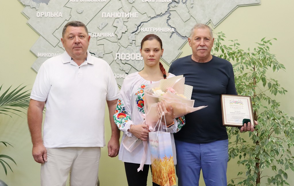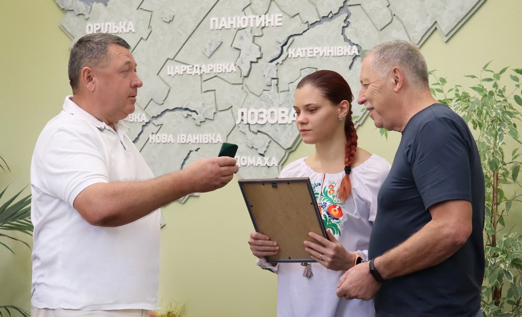 На знак подяки вручив Марії Чумак відзнаку Лозівської міської ради та побутову техніку.