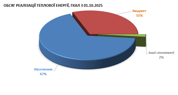 Обсяг реалізації теплової енергії власним споживачам, Гкал |