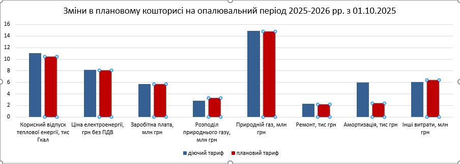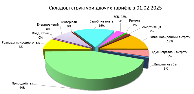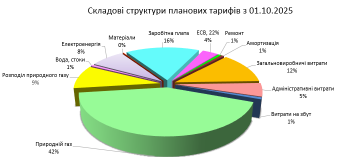 У структурі планових тарифів енергоносії, на вартість яких підприємство не має впливу, становлять 59,3%. Разом із фондом оплати праці та єдиним соціальним внеском ці складові займають майже 80,2%, решта – ремонт, амортизація, інші витрати собівартості.