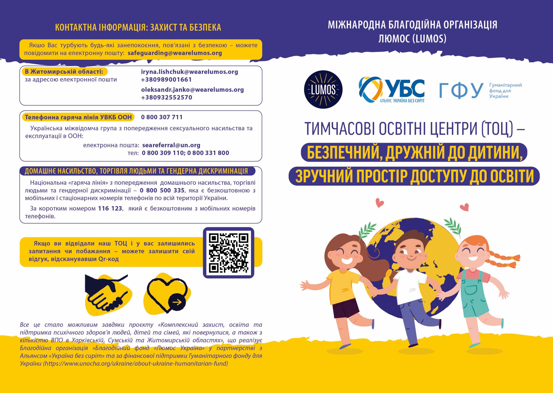 Інформація щодо безпеки й захисту дітей у рамках реалізіації проєкту «Комплексний захист, освіта та підтримка психічного здоров'я дітей та сімей з числа ВПО в Житомирській, Сумській та Харківській областях»