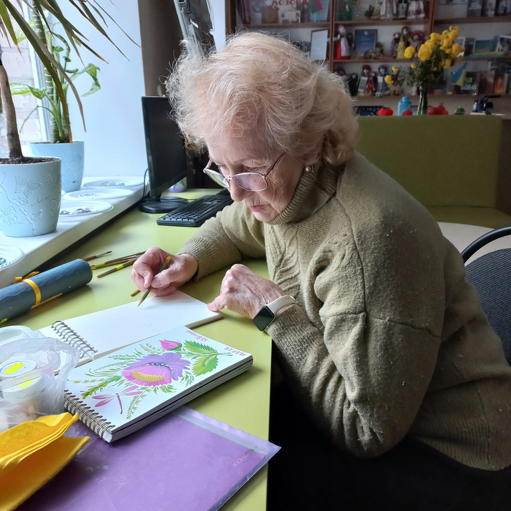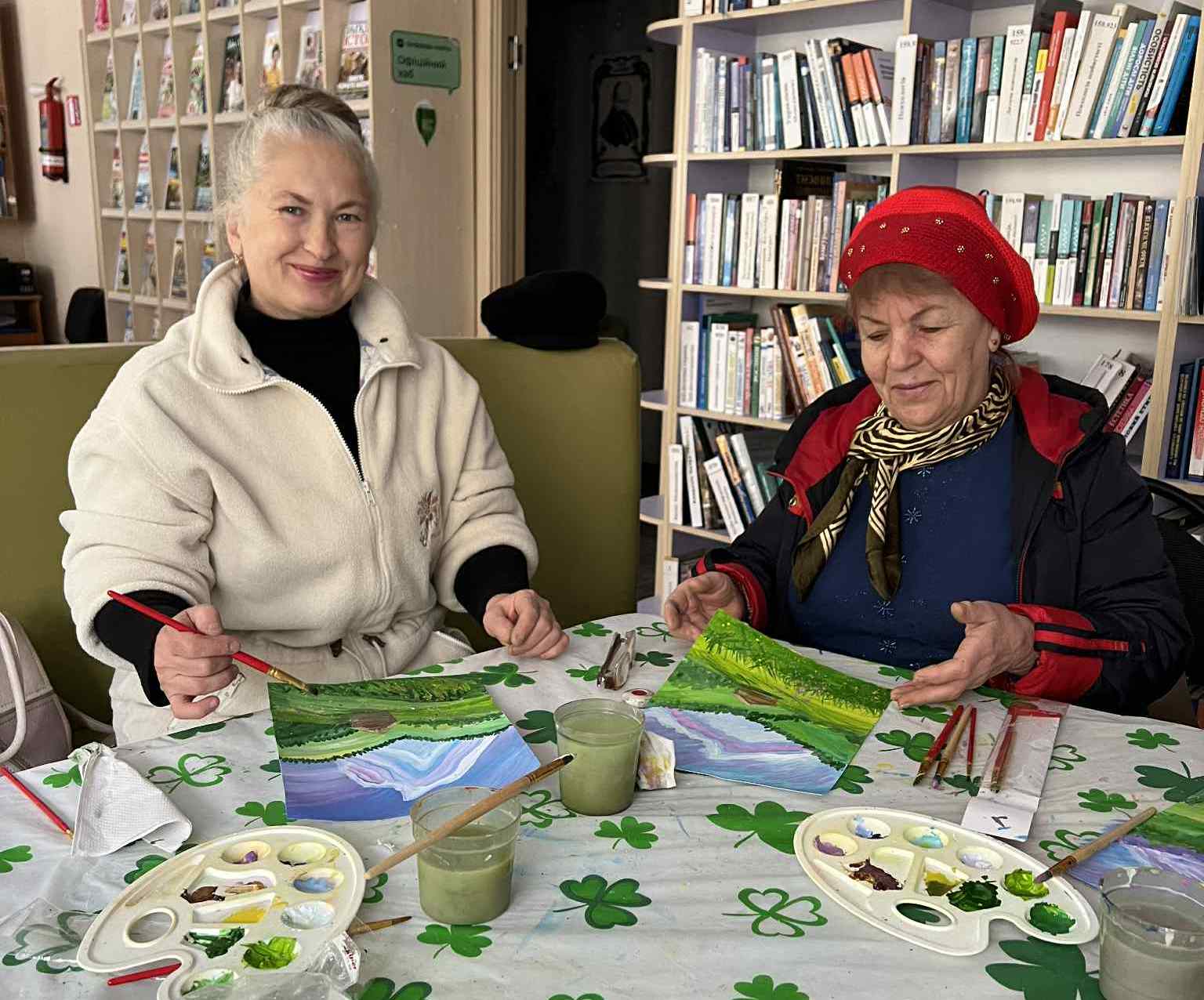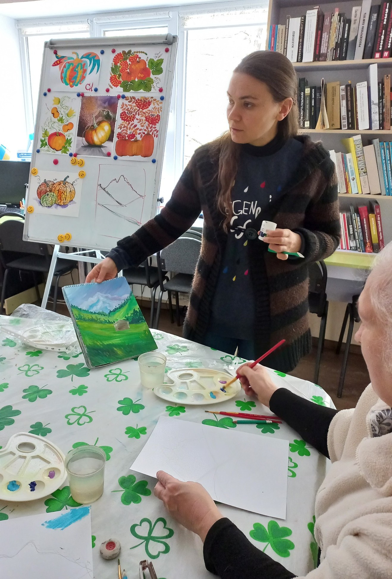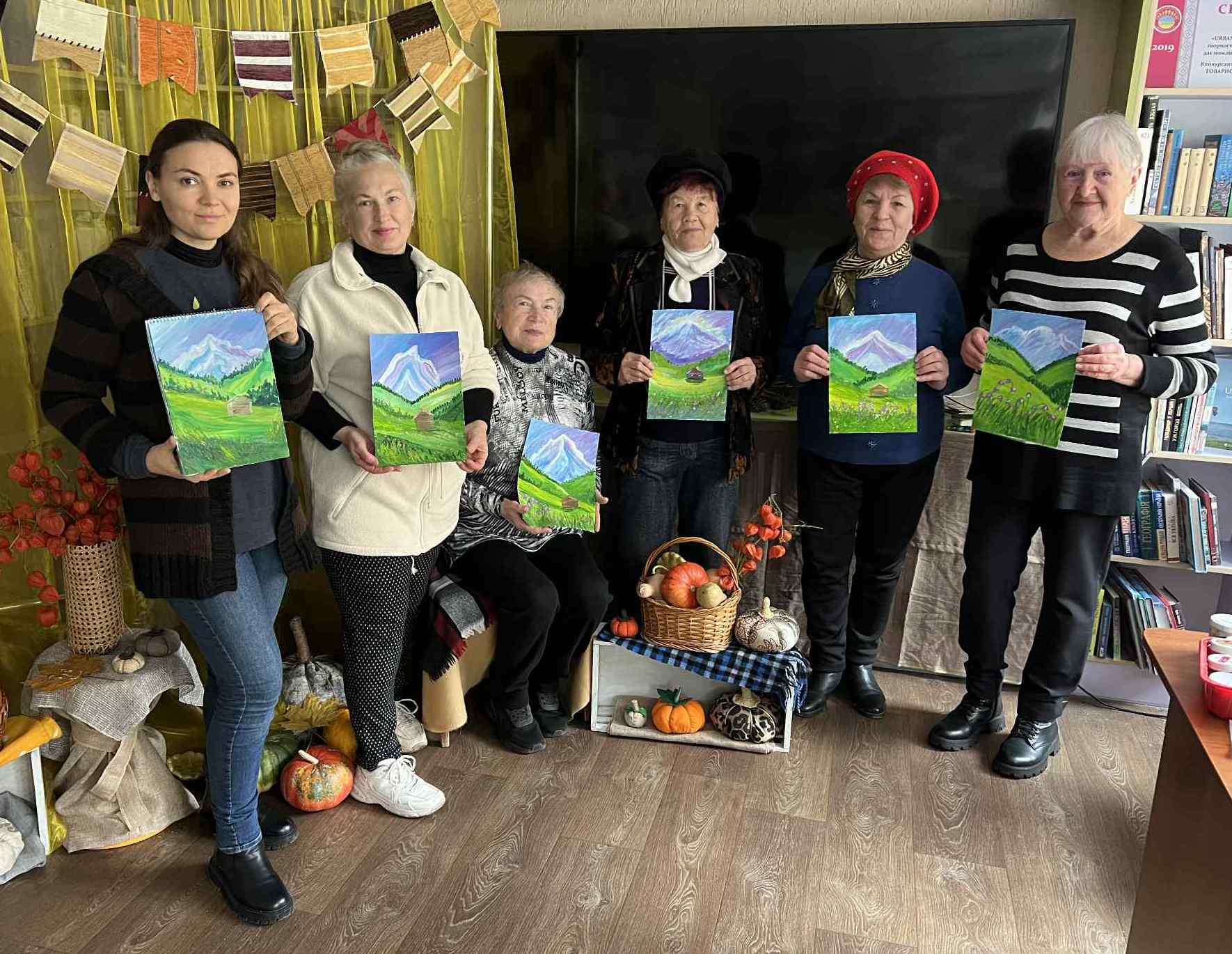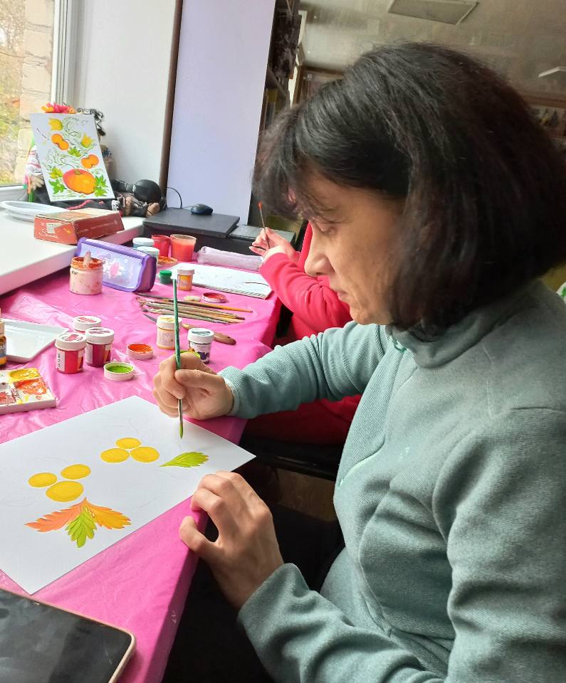 Учасниці Школи третього віку Німецького дому “Лозова” створювали теплі осінні малюни та гірські пейзажі.