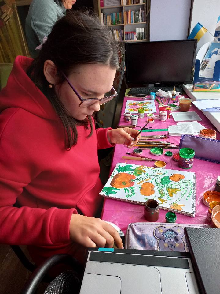 Навіть коли за вікном — сірий день і немає світла, у Юнацькій бібліотеці панує яскравий настрій. Адже тут тривають уроки малювання з Юлією Білоус — і ні відсутність електрики, ні похмура погода не можуть стати на заваді творчості!