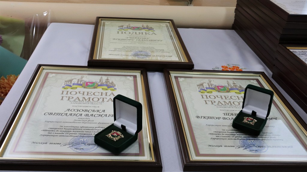На початку заходу присутні вшанували хвилиною мовчання викладачів та студентів, які загинули за Незалежність України. Згадали усіх причетних до створення Лозівської філії автодорожнього. Працівникам коледжу вручили грамоти та оголосили подяки.