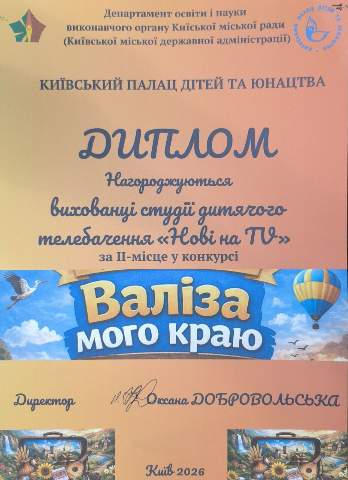Щиро пишаємося творчим баченням нашої вихованки, талановитістю всієї команди та професійною підготовкою наставниці — керівниці студії дитячого телебачення «Нові на TV», викладачки Коновалової Олени Василівни.