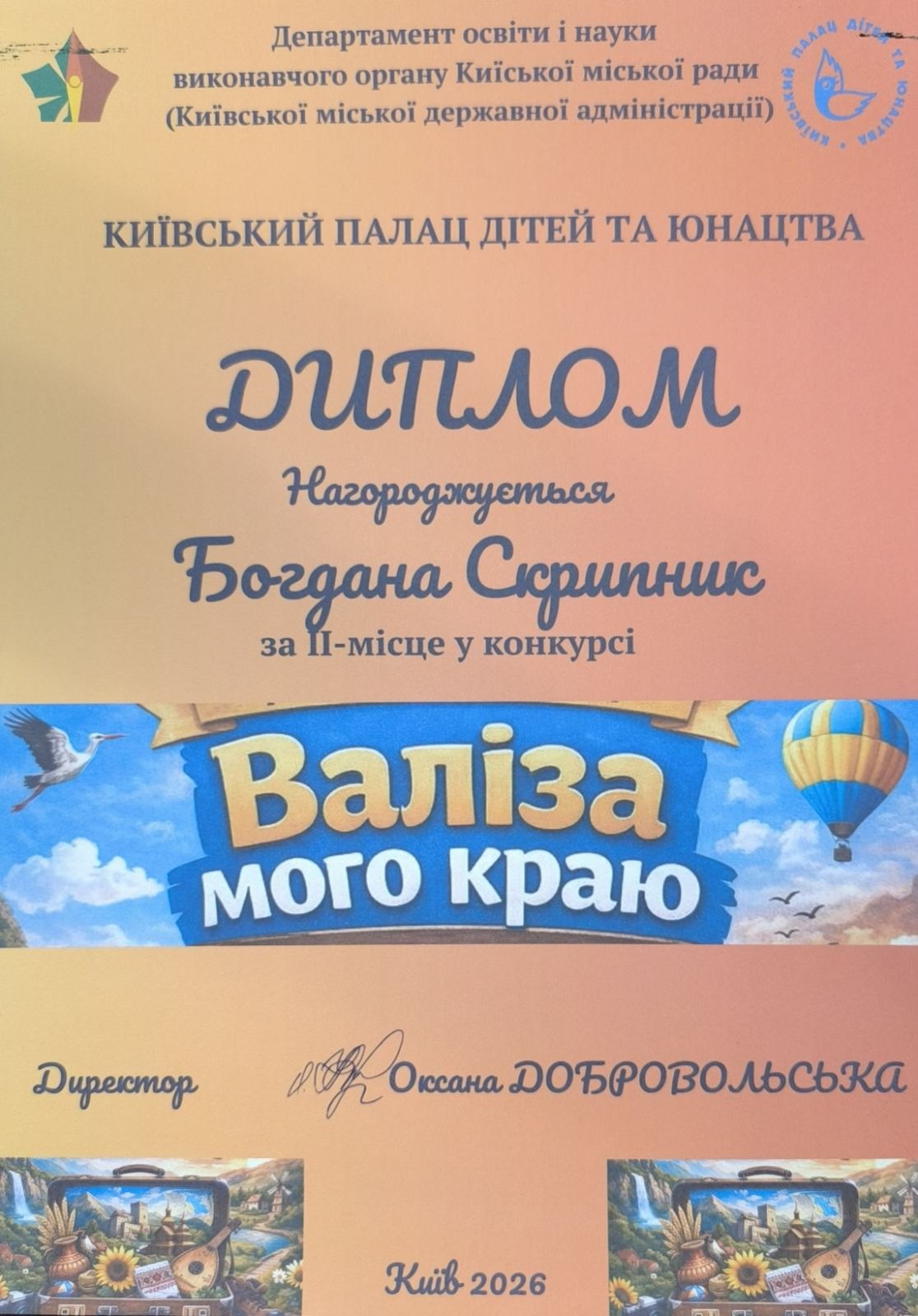 Вихованці студії дитячого телебачення «Нові на TV» КЗ «Лозівський Палац дитячої та юнацької творчості» здобули Диплом ІІ місця у конкурсі «Валіза мого краю», а голова ради старшокласників «Нова хвиля» Богдана Скрипник отримала Диплом ІІ ступеня у цьому ж конкурсі.