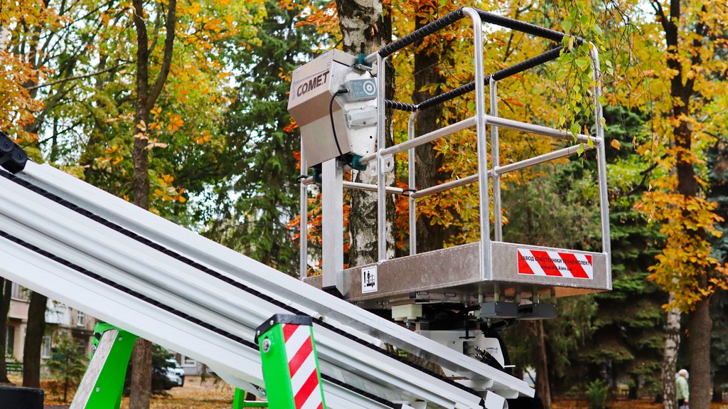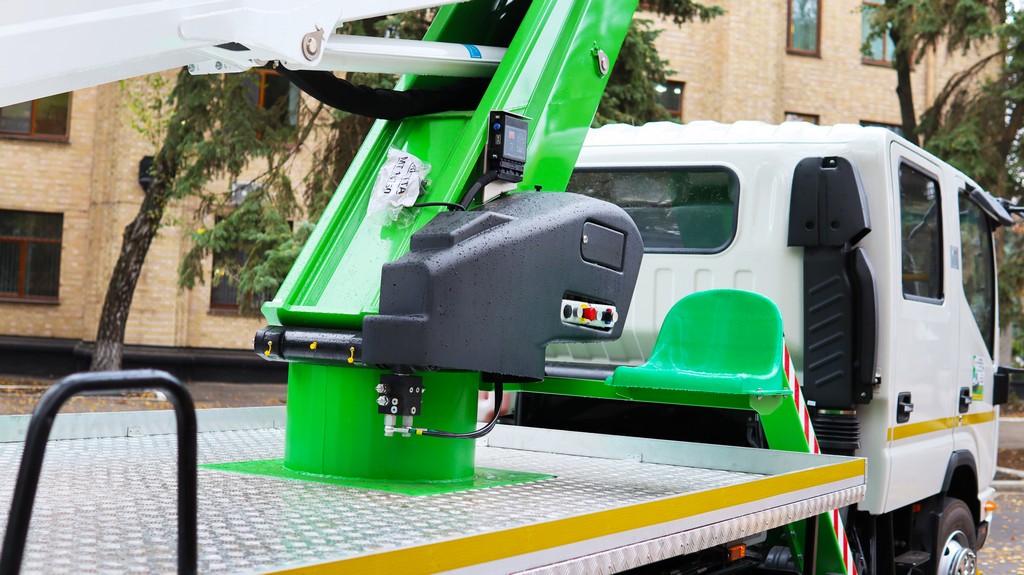 Друга одиниця техніки отримана від міжнародних партнерів - нова сучасна автовишка. Спецавтомобіль дасть можливість виконувати, як аварійні так і планові роботи на висоті до 24 метрів – обрізати дерева, формувати крони, ремонтувати електромережі.