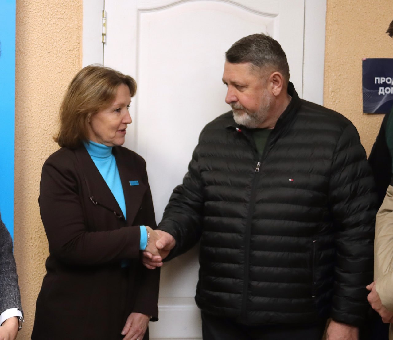 Анн-Клер Дюфе ознайомилася з роботою Транзитного центру, де команда ЮНІСЕФ активно підтримує внутрішньо переміщених осіб. Організація надає всебічну допомогу переселенцям, забезпечує їх необхідними наборами та покращує умови тимчасового перебування.