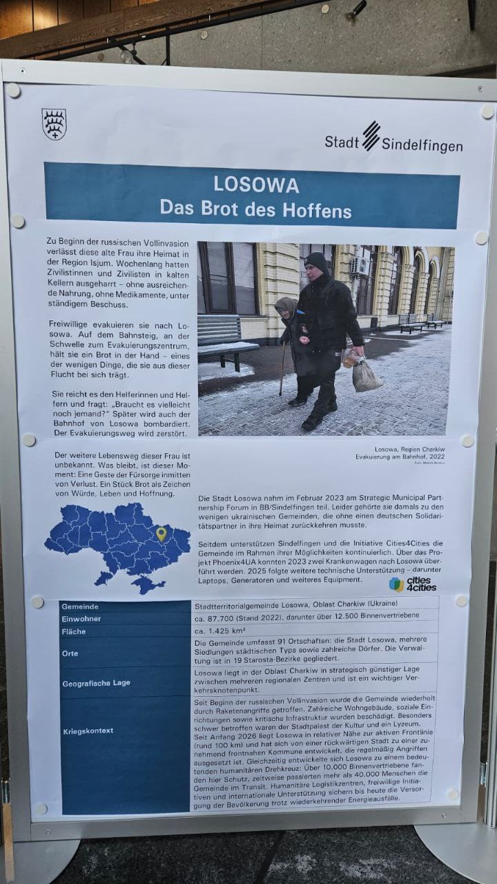Виставка у Зіндельфінгені – один із результатів тісної міжнародної співпраці. Її фундамент свого часу заклав секретар Лозівської міської ради Юрій Кушнір, представляючи громаду на Форумі зі стратегічного муніципального партнерства.