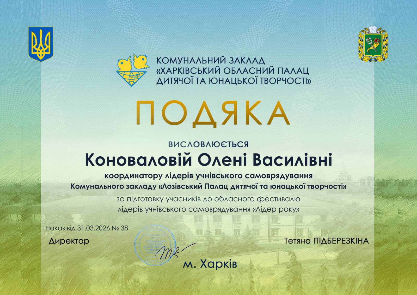 Диплом III ступеня у номінації «Нескорена Харківщина: лідери дії» виборола команда Лозівської міської ради старшокласників «Нова хвиля»! ( Скрипник Богдана, Мілана Шейко, Назар Тарасовський )