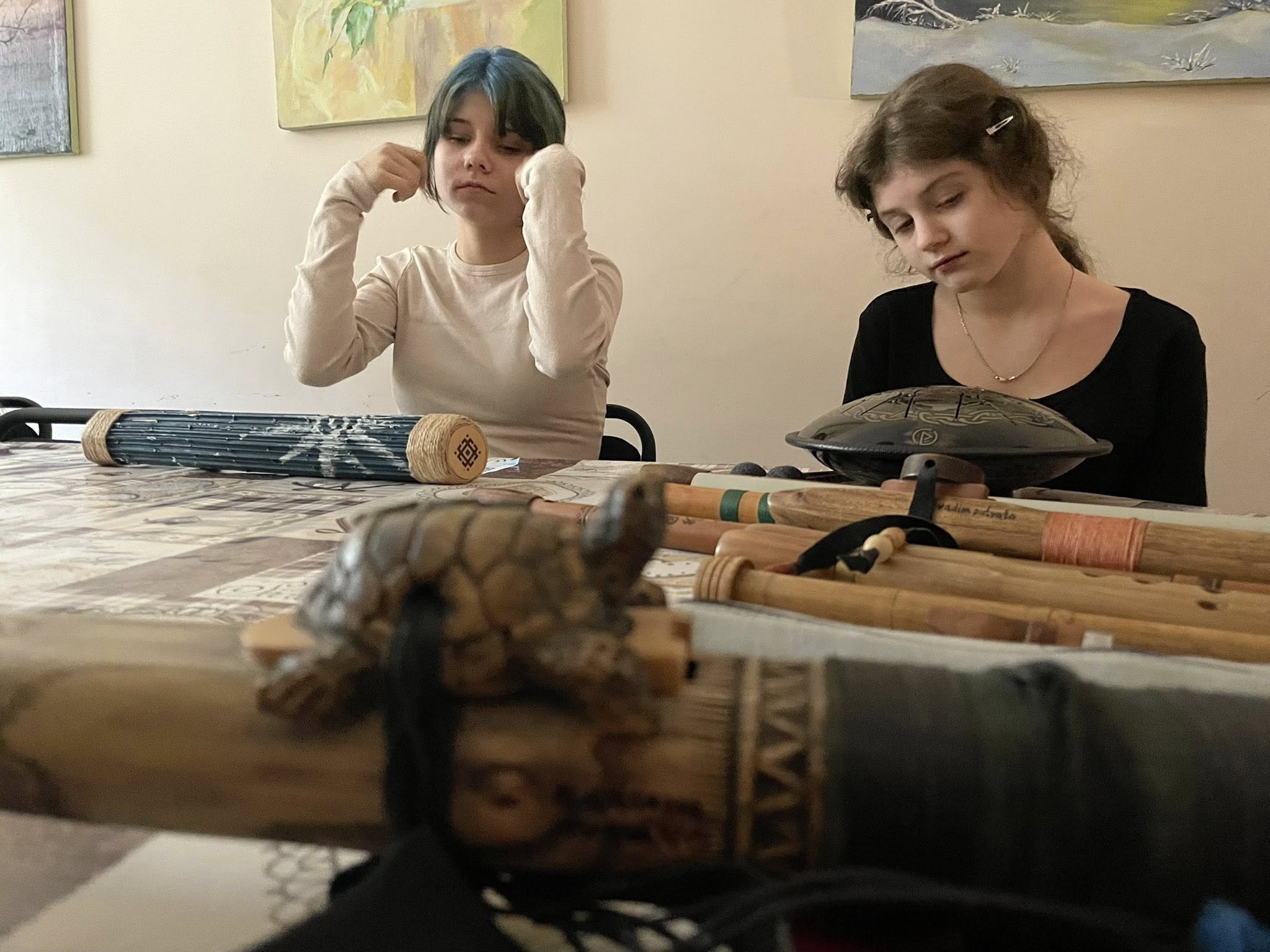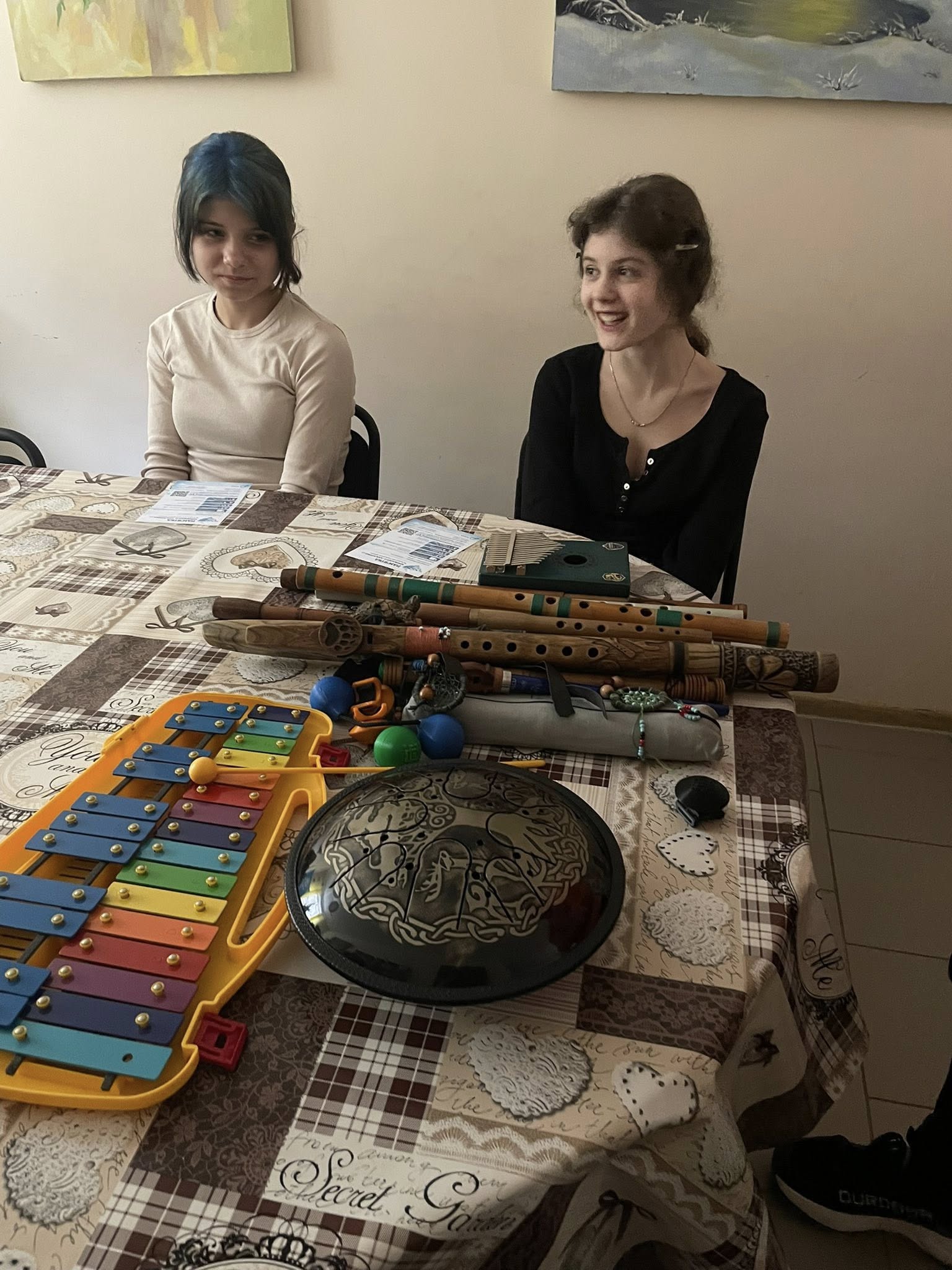 Під час зустрічі діти мали можливість у безпечній атмосфері виразити свої переживання й накопичені почуття. Серед різноманітних вправ особливою стала музична складова: учасники пробували грати на духових інструментах, імпровізували, досліджували звук і через нього передавали власний настрій. Це не була музична терапія в класичному розумінні — радше живий досвід самовираження, який подарував багато радості, сміху та щирого захоплення.