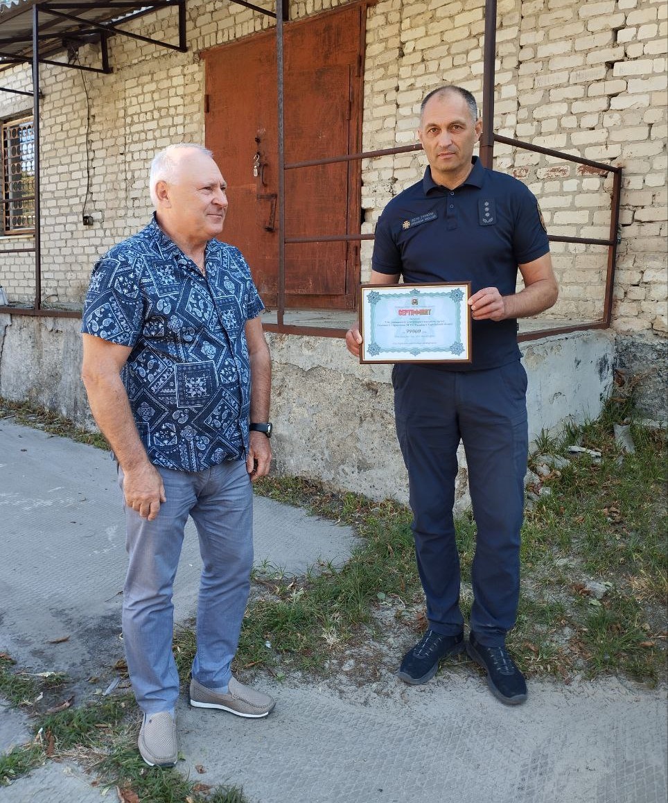 З нагоди професійного свята Олександр Жидков вручив лозівським рятувальникам Сертифікат на дизельне паливо та передав спецінструмент отриманий завдяки співпраці з благодійною організації «БФ «Шлях Україна».