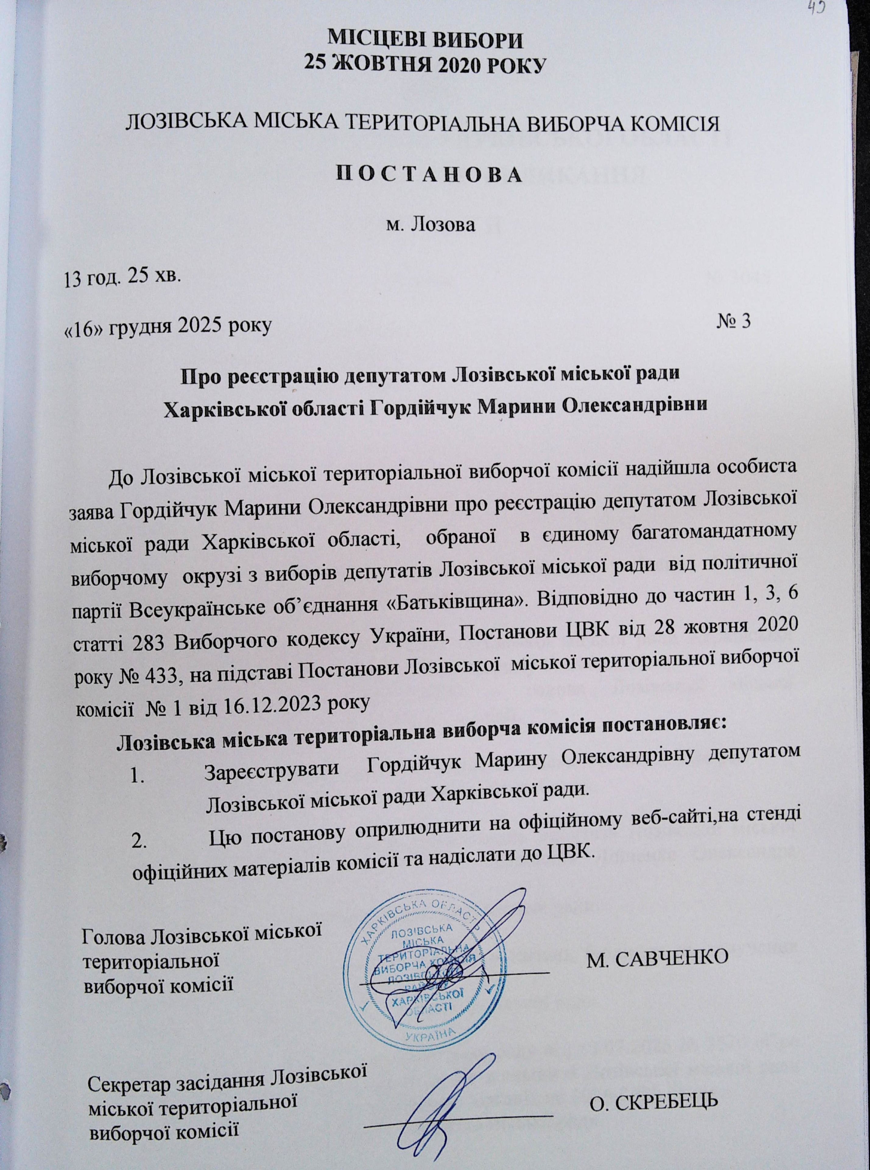Про реєстрацію депутатом Лозівської міської ради Харківської області Бут-Гусаіма Василя Михайловича