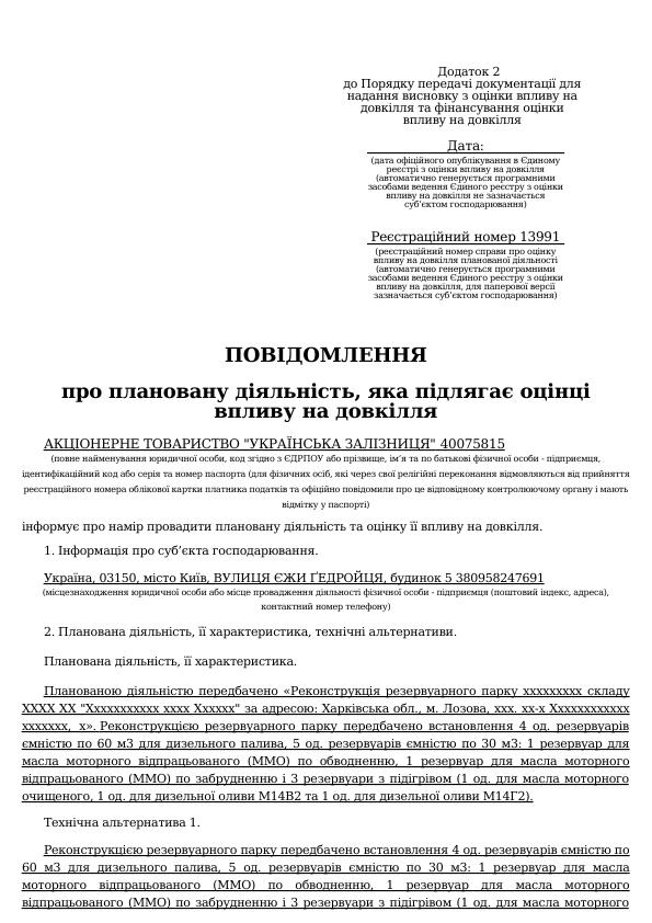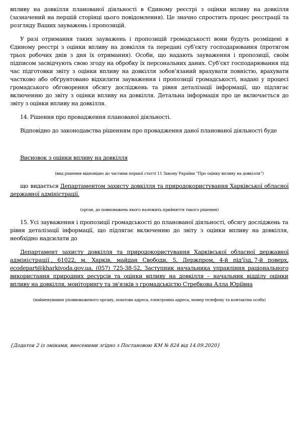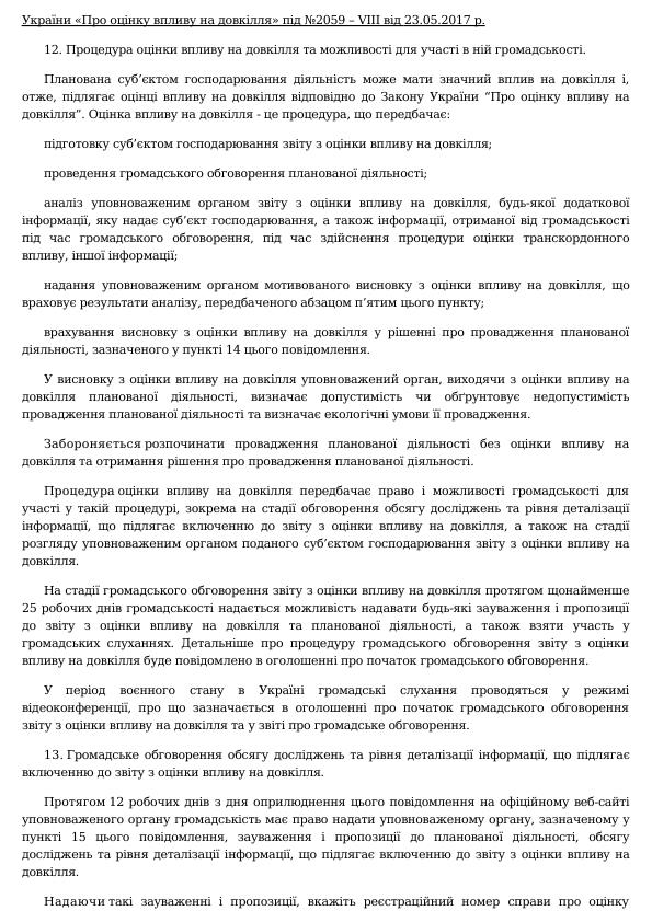ПОВІДОМЛЕННЯ про плановану діяльність, яка підлягає оцінці впливу на довкілля
