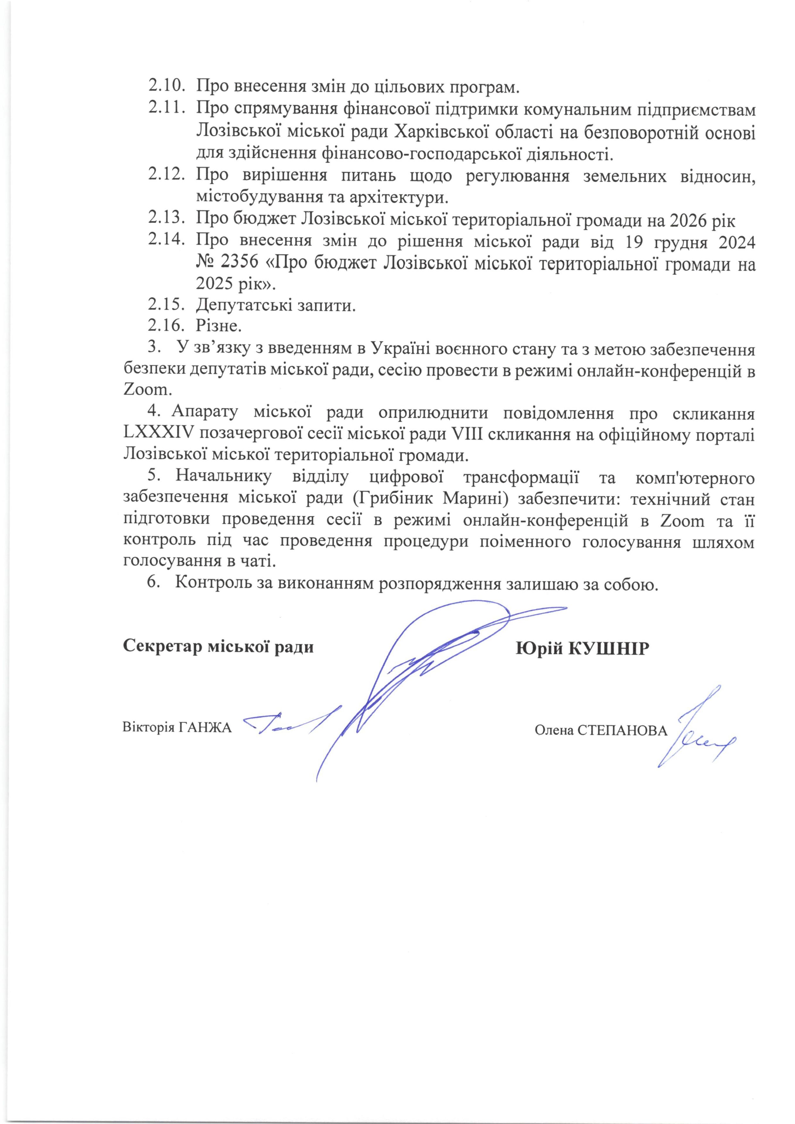 Скликання LХХV сесії міської ради VIII скликання
