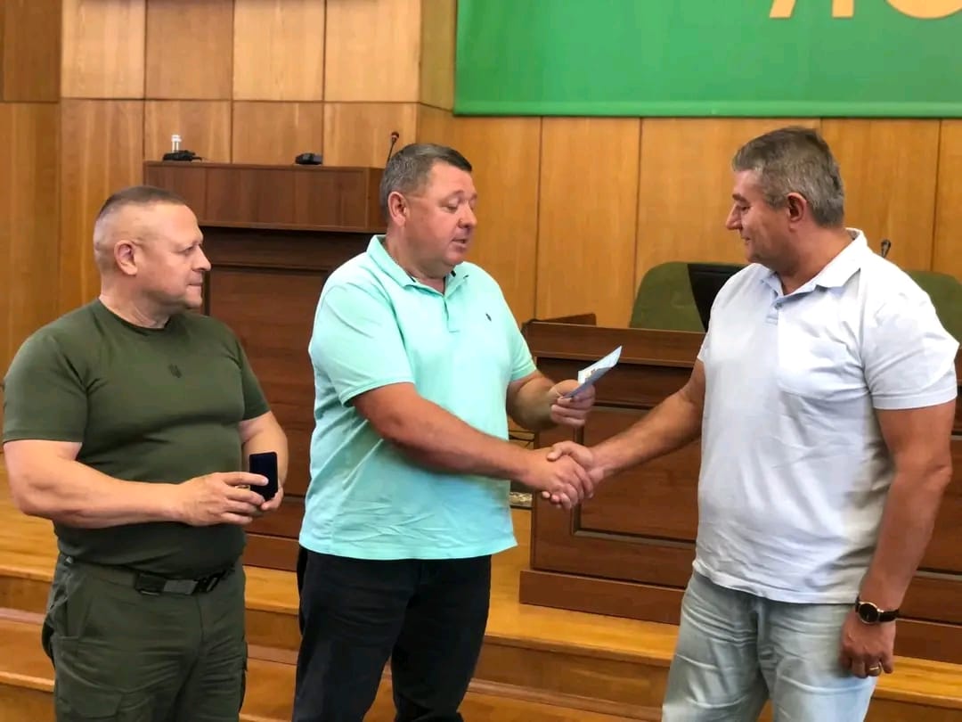Голова громади виконав почесну місію – передати нагороду від військових депутату Лозівської районної ради Андрію Воронкіну, який підтримує захисників, медицину та спорт Лозівщини.