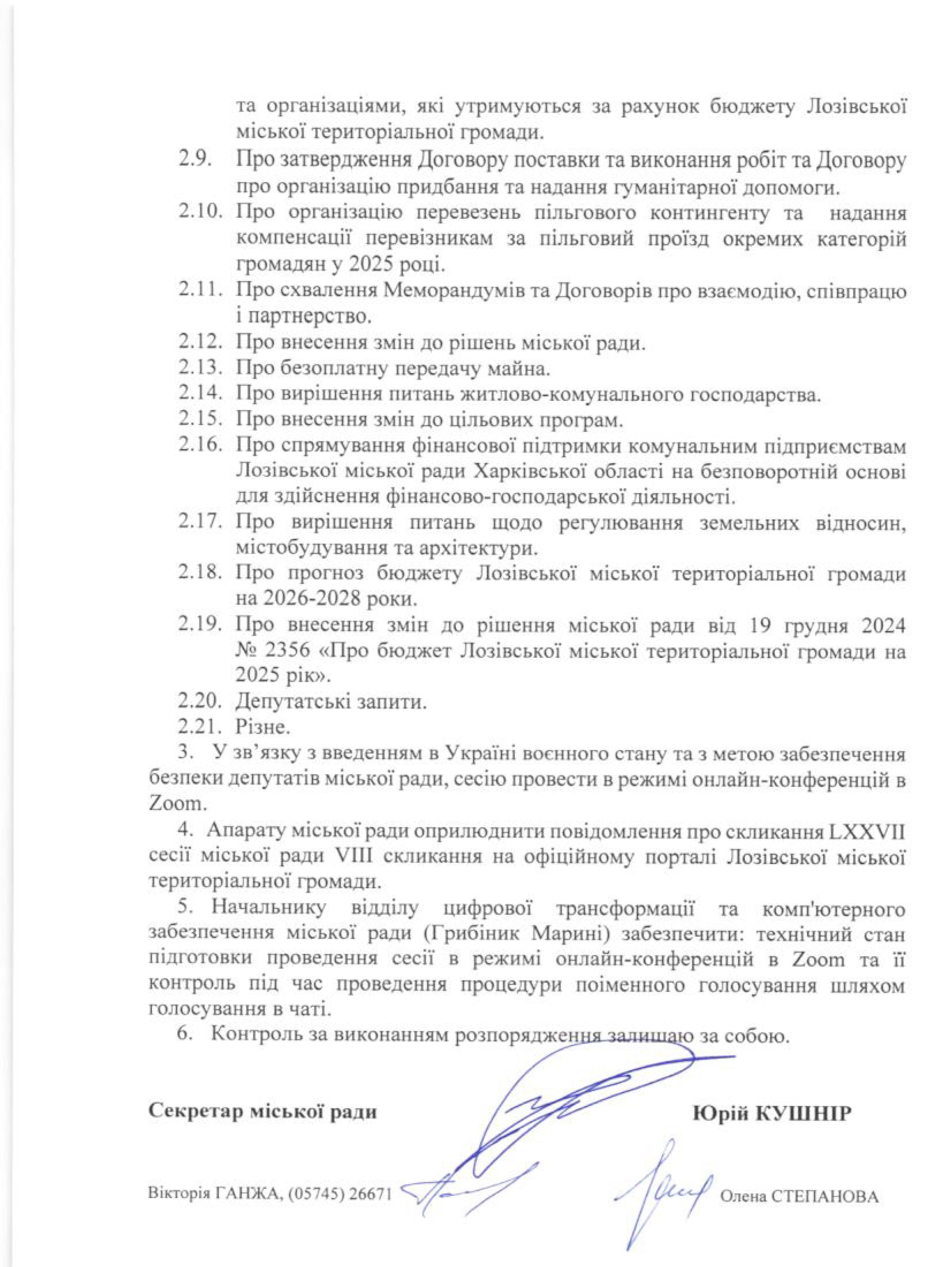 Скликання LХХV сесії міської ради VIII скликання