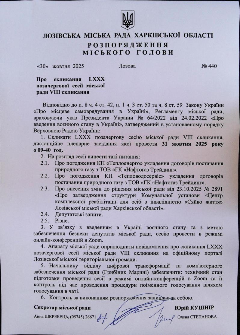 Скликання LХХX позачергової сесії міської ради VIII скликання