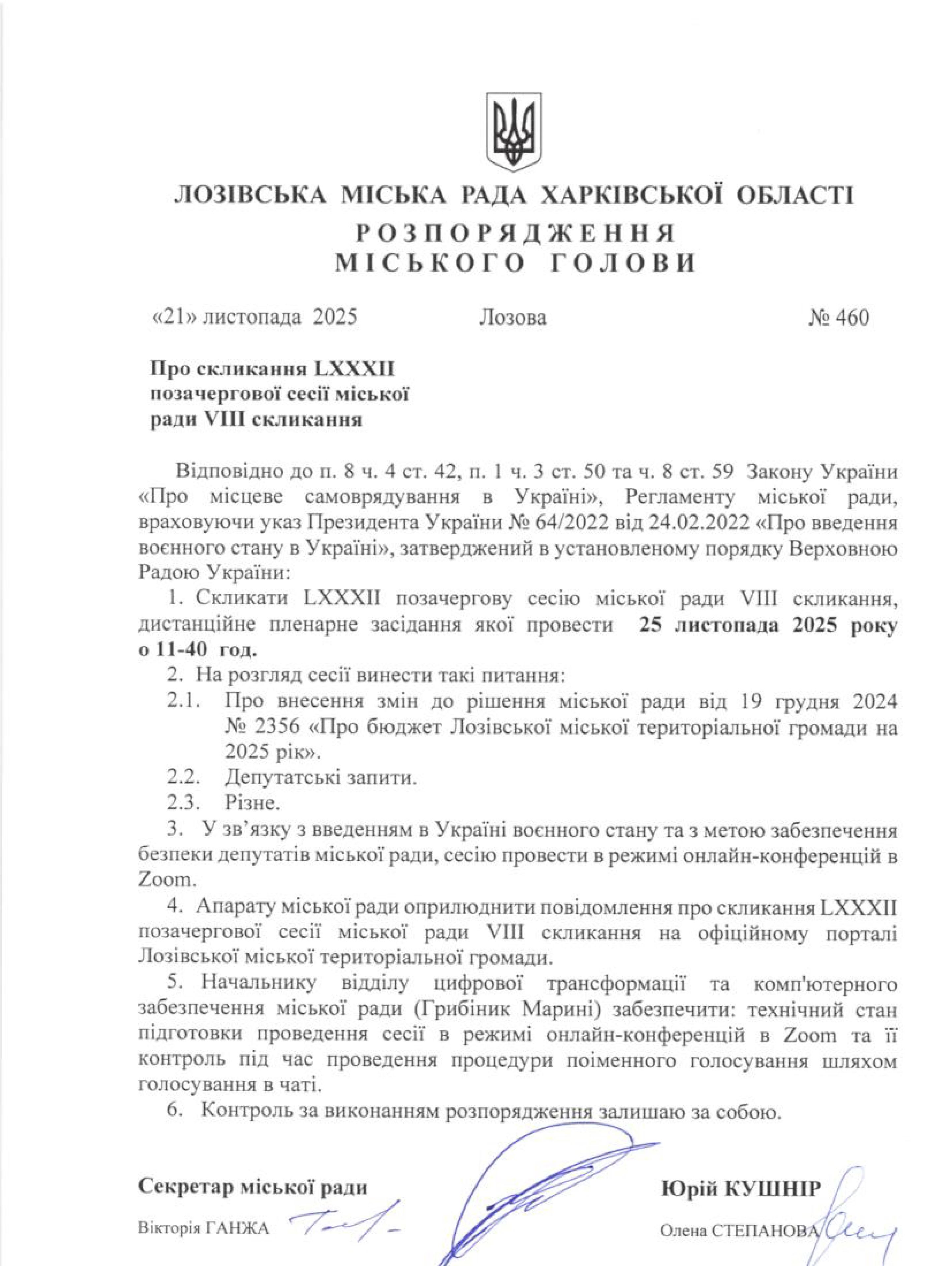 Оголошення щодо скликання LХХX позачергової сесії міської ради VIII скликання