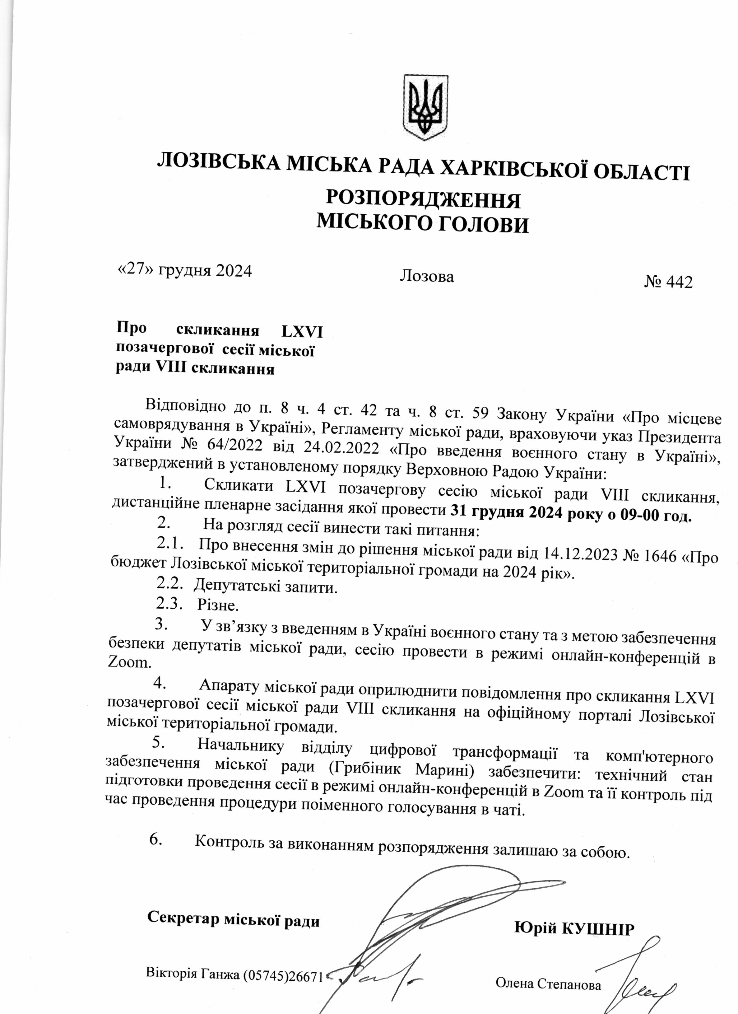 Скликання LХХV сесії міської ради VIII скликання