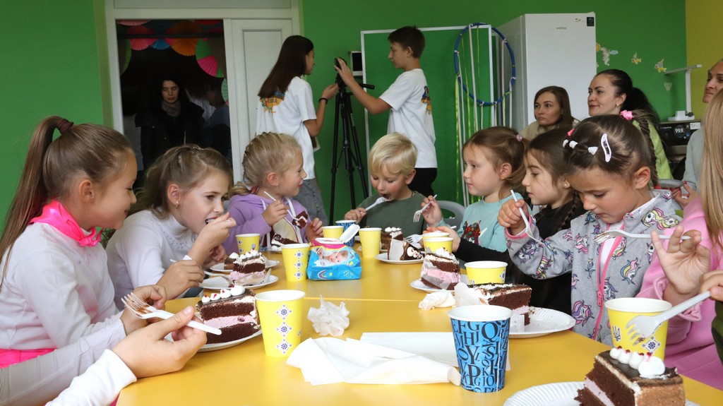Для дітей організатори підготували розважальну програму з конкурсами, танцями і піснями. Наостанок пригощали малечу солодощами.