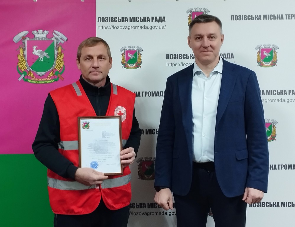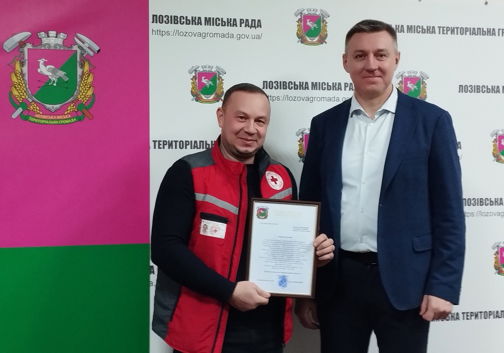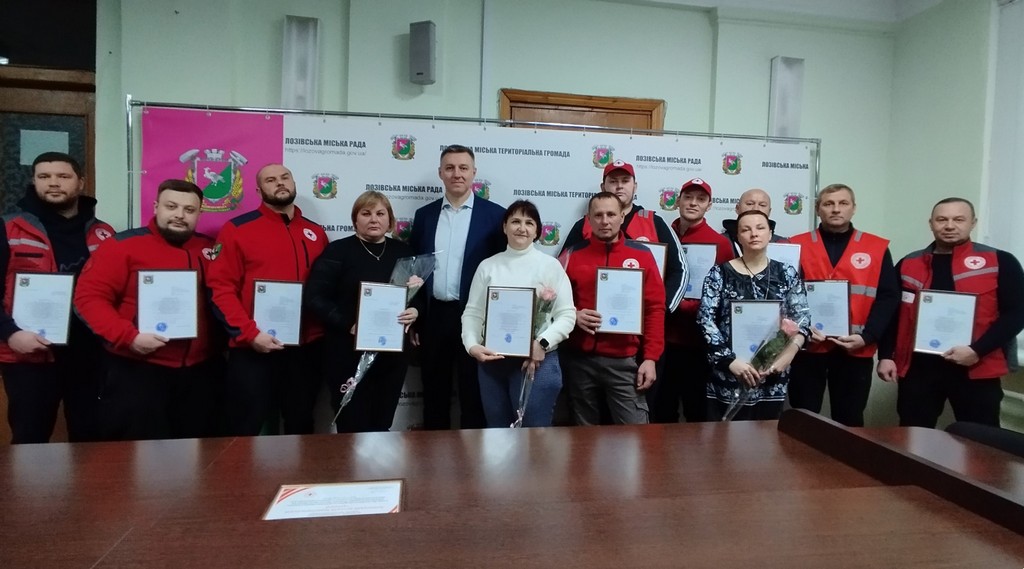 Листи-Подяки вручаються волонтерам Лозівської ланки Загону швидкого реагування Харківської обласної організації Товариства Червоного Хреста України: