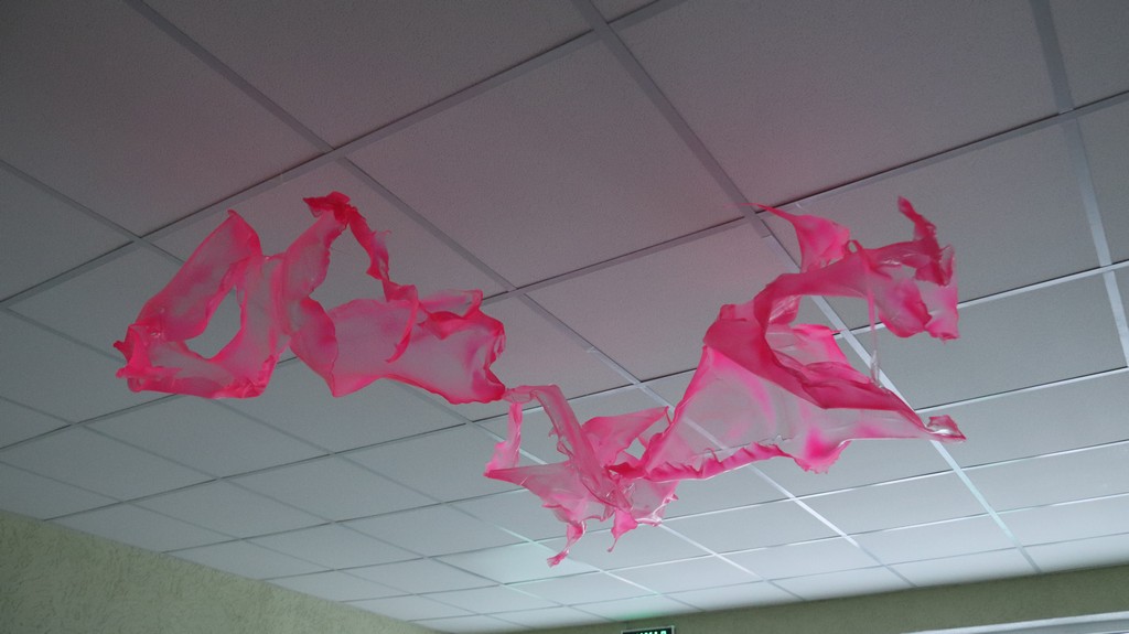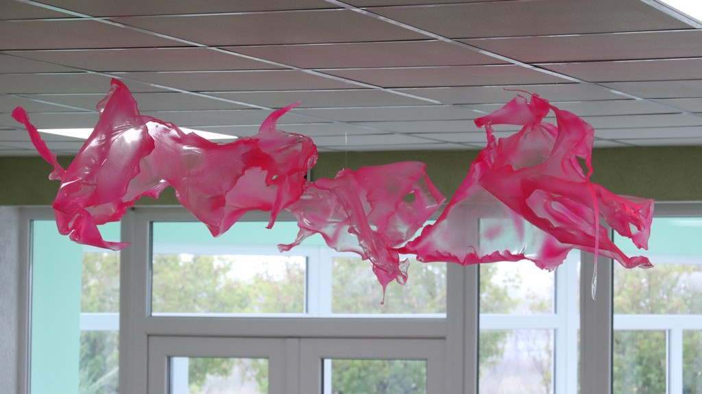 Рожеві інсталяції створені з акрилового скла у стилі біонізму, розповідає художник. Чому саме рожевий колір? Пояснює, він утворюється завдяки поєднанню червоного кольору - крові, що символізує життя, та синього кольору - неба, що значить надія. Рожевий – він невагомий, легкий, прозорий, тому саме цей колір використовував для своїх робіт, які представляє на проєкті “Надія”.
