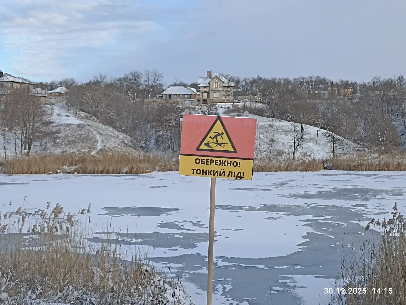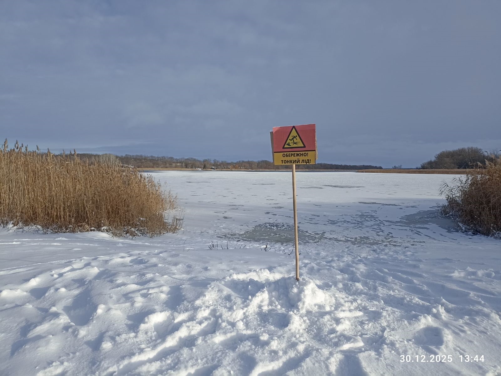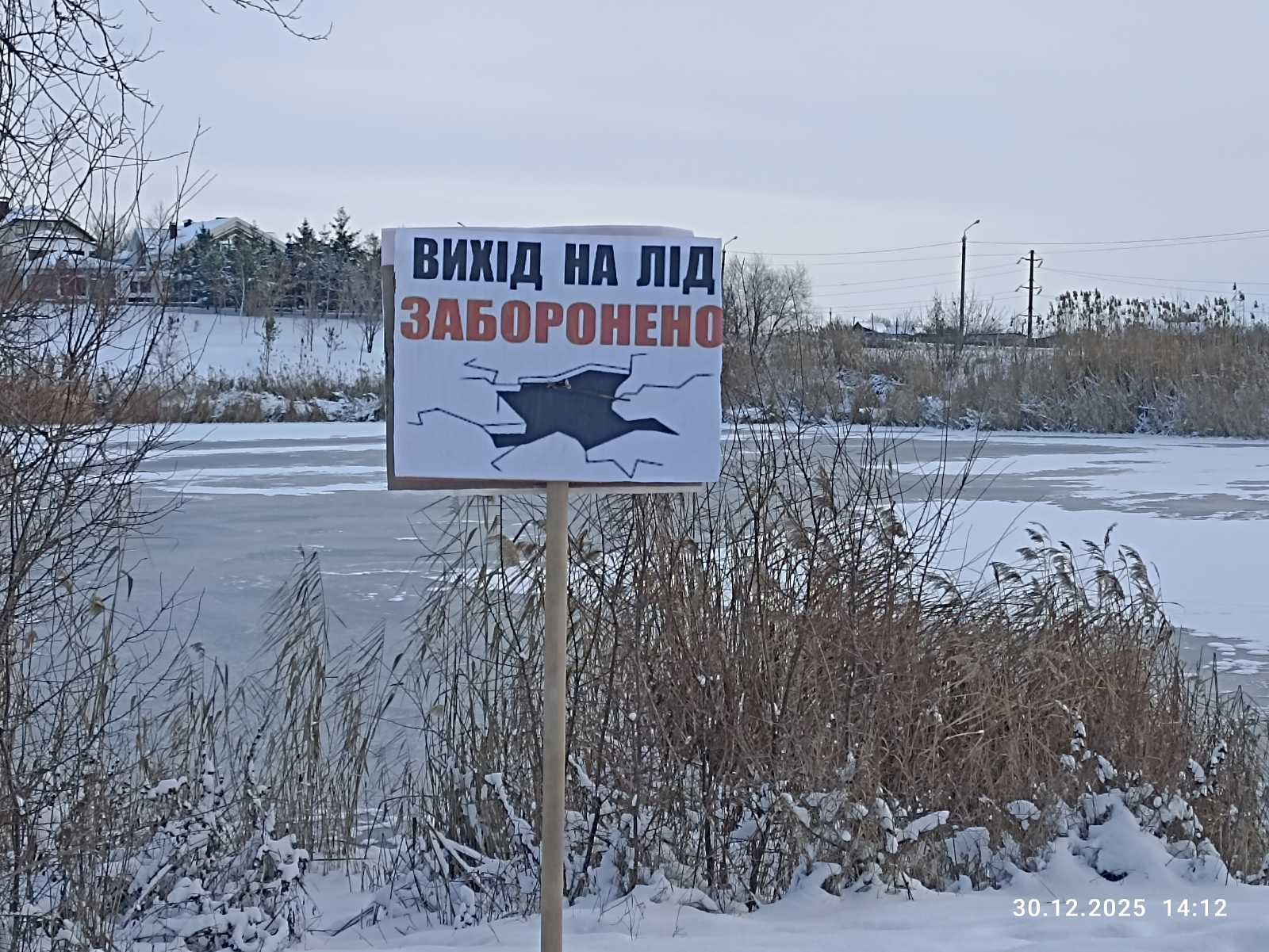 На виконання рішення виконавчого комітету від 21.10.2025 № 1517 «Про затвердження заходів щодо безаварійного пропуску осінньо-зимових дощових паводків, льодоходу і весняної повені на території населених пунктів Лозівської міської територіальної громади в 2025-2026 роках» Управлінням житлово-комунального господарства та будівництва міської ради 30.12.2025 року встановлені попереджувальні таблички «ОБЕРЕЖНО! ТОНКИЙ ЛІД» та «ВИХІД НА ЛІД ЗАБОРОНЕНО» біля водних об’єктів Лозівської міської територіальної громади