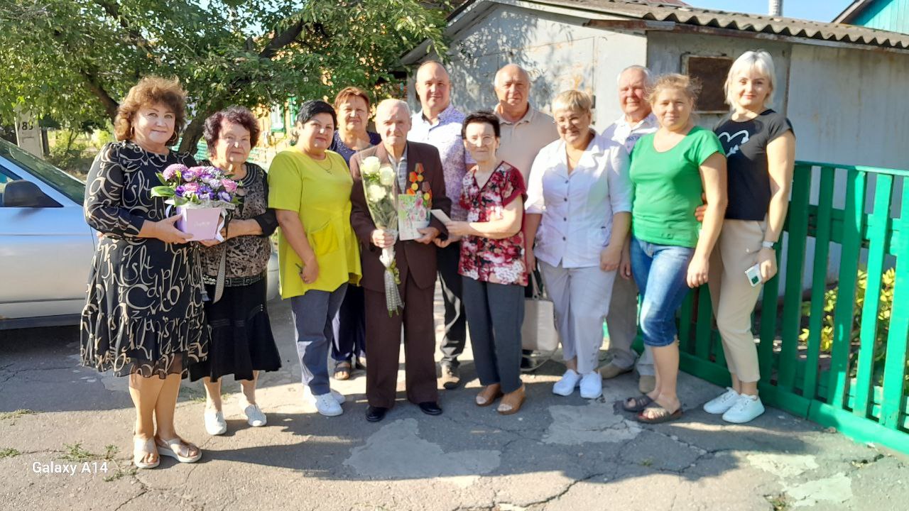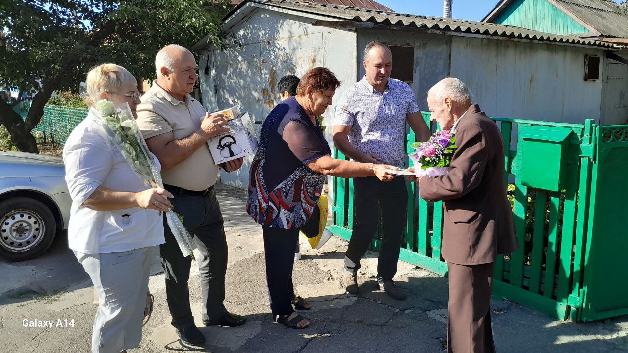 За дорученням Лозівського міського голови Сергія Зеленського сьогодні, 17 вересня, привітати довгожителя з ювілеєм завітали представники Панютинського старостату та Територіального Центру соціального обслуговування населення. Вітали діти, онуки та племінники.