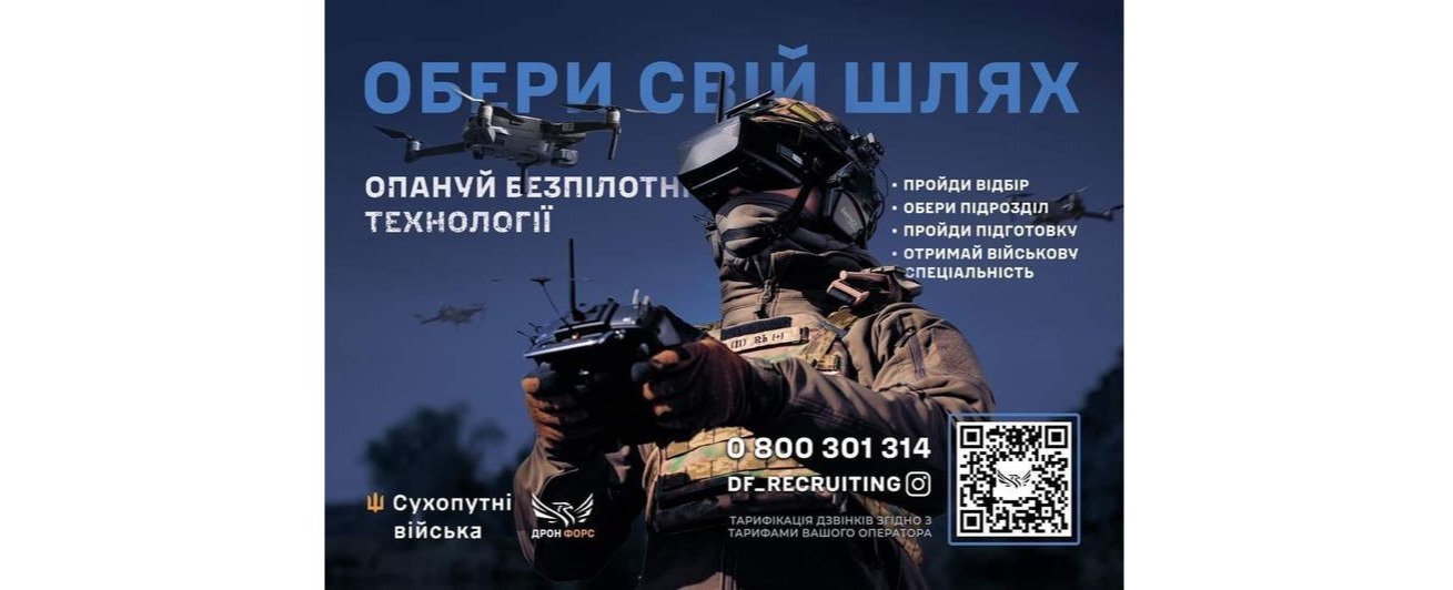 Ретельну фахову підготовку у поєднанні з можливістю самому обрати підрозділ пропонує створений Командуванням Сухопутних військ ЗС України рекрутинговий центр «Drone Force».