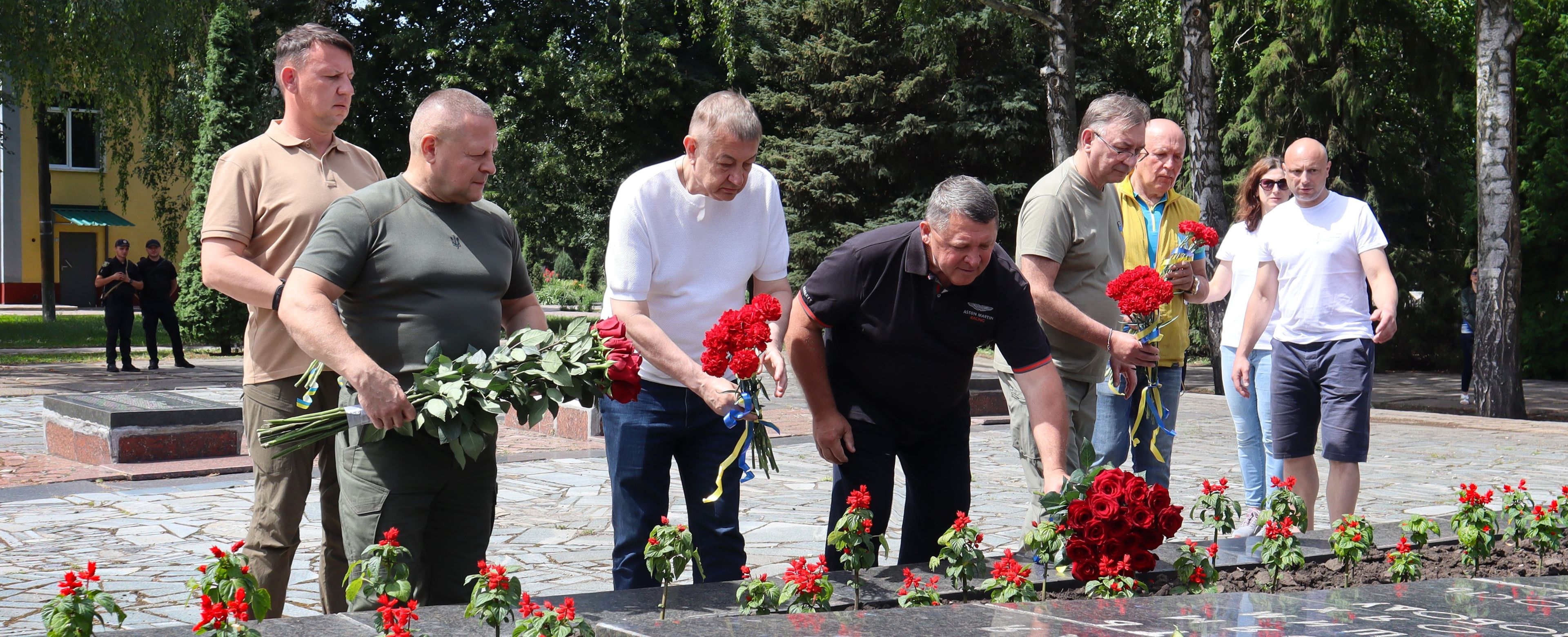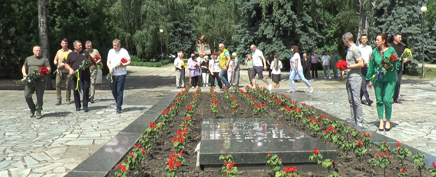 Представники місцевої влади, відділення Національного олімпійського комітету України в Харківській області, народні обранці, захисники та ветерани поклали квіти до братської могили на Меморіалі Слави у Лозовій.
