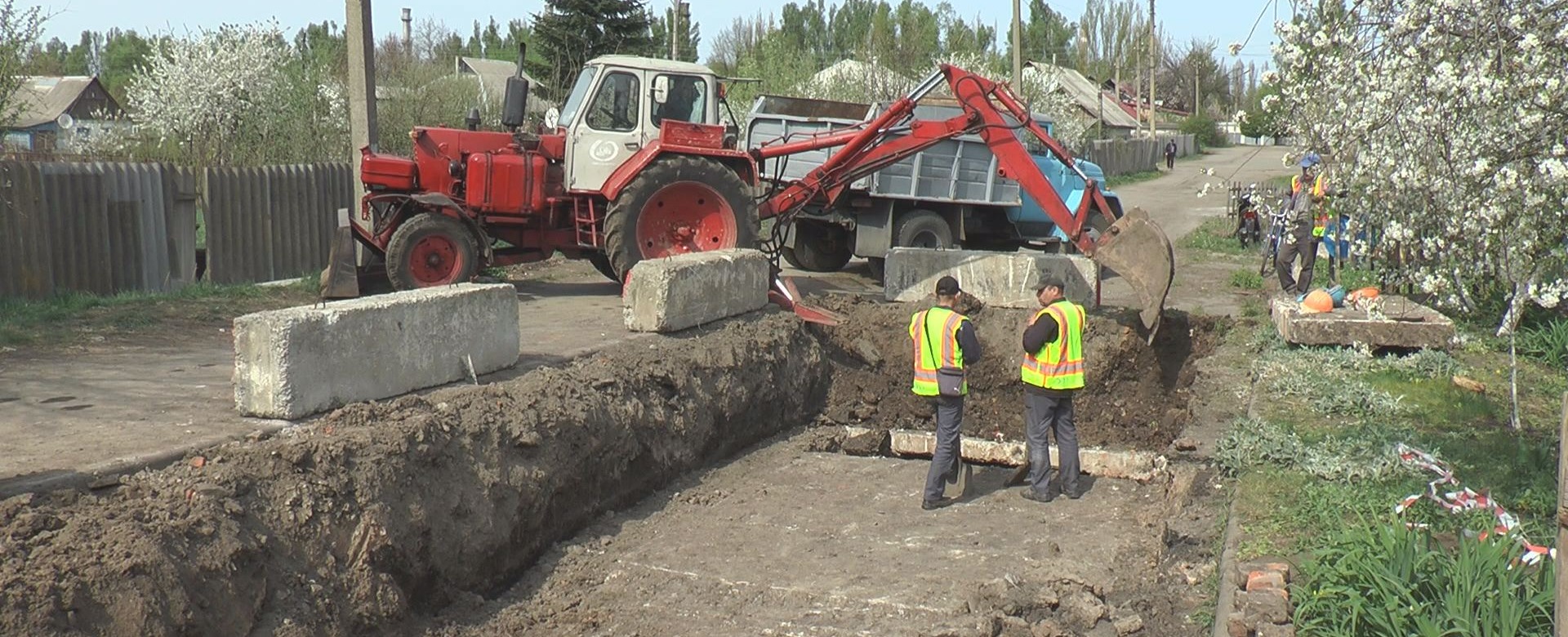 Працівники «Лозоваводосервісу» замінюють аварійну ділянку колектору та облаштовують алею