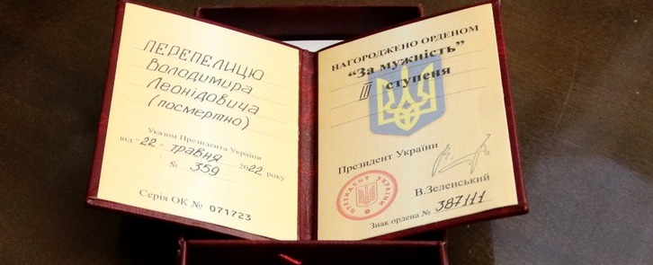 Родині полеглого захисника Володимира Перепелиці вручили його Орден «За мужність» ІІІ ступеню