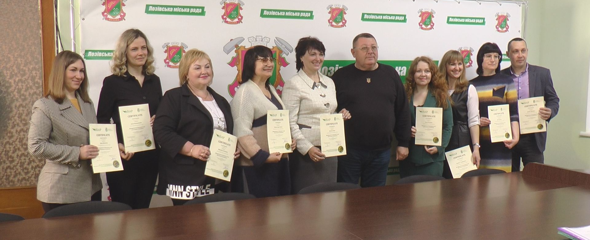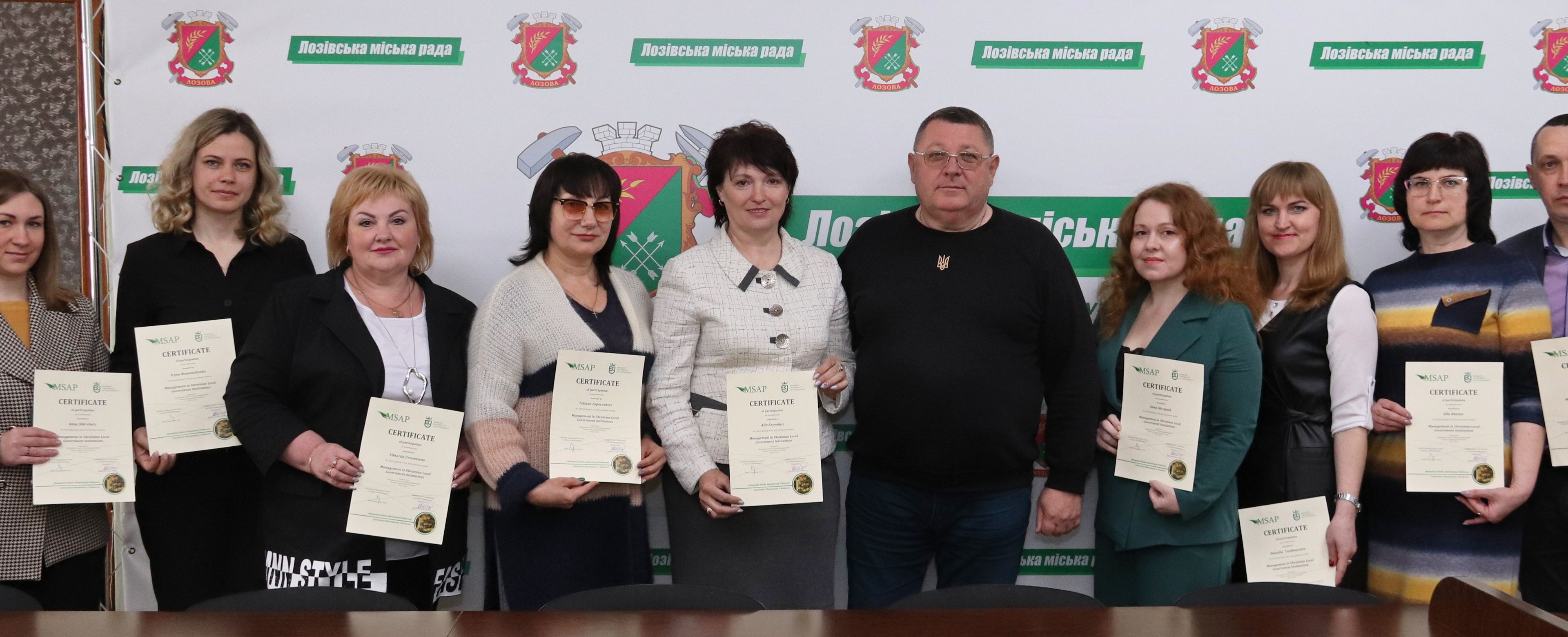Незважаючи на військовий час, слухачі захистили дипломні роботи та отримали сертифікати міжнародного зразка. Вручив їх десяти фахівцям виконавчого комітету, управлінь та комунальних підприємств міської ради Лозівський міський голова Сергій Зеленський.