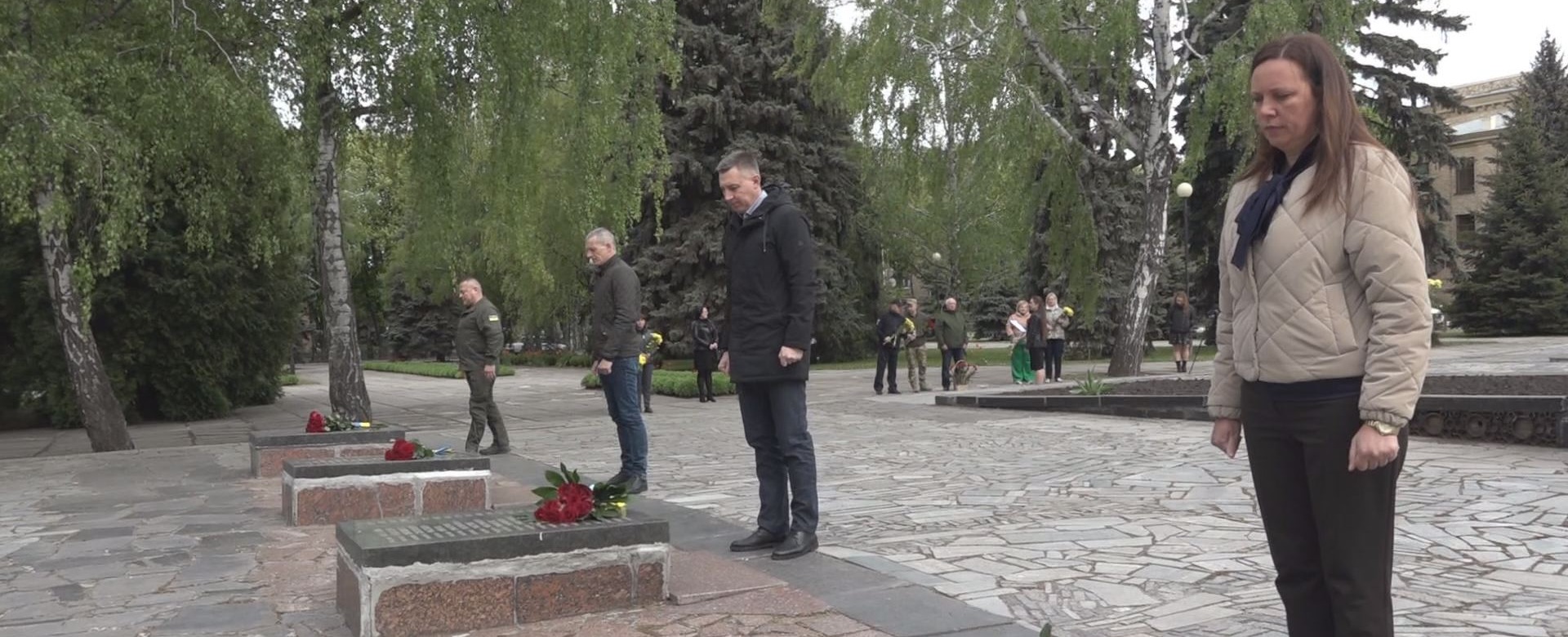 Церемонія покладання квітів до Меморіалу Слави у Лозовій відбулася сьогодні, 8 травня, у День пам’яті та примирення.