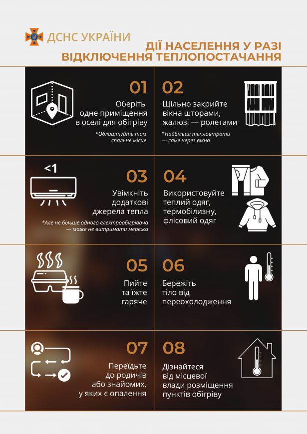 - Дізнайтеся від місцевої влади розміщення пунктів обігріву.